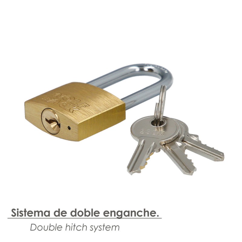 Candado laton arco largo llaves iguales nº2.